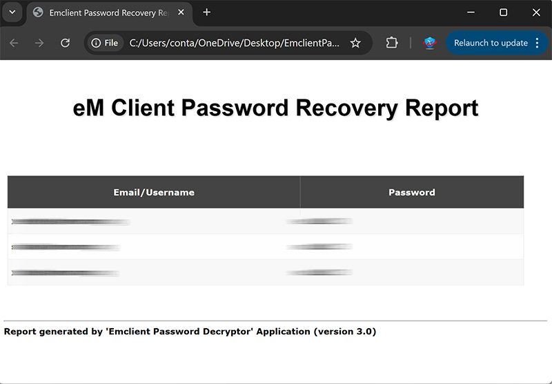 New 2025 release supporting recovery from latest eM client version. Detect & set eM Client profile path at start. Enhanced GUI interface. Improved HTML report. |